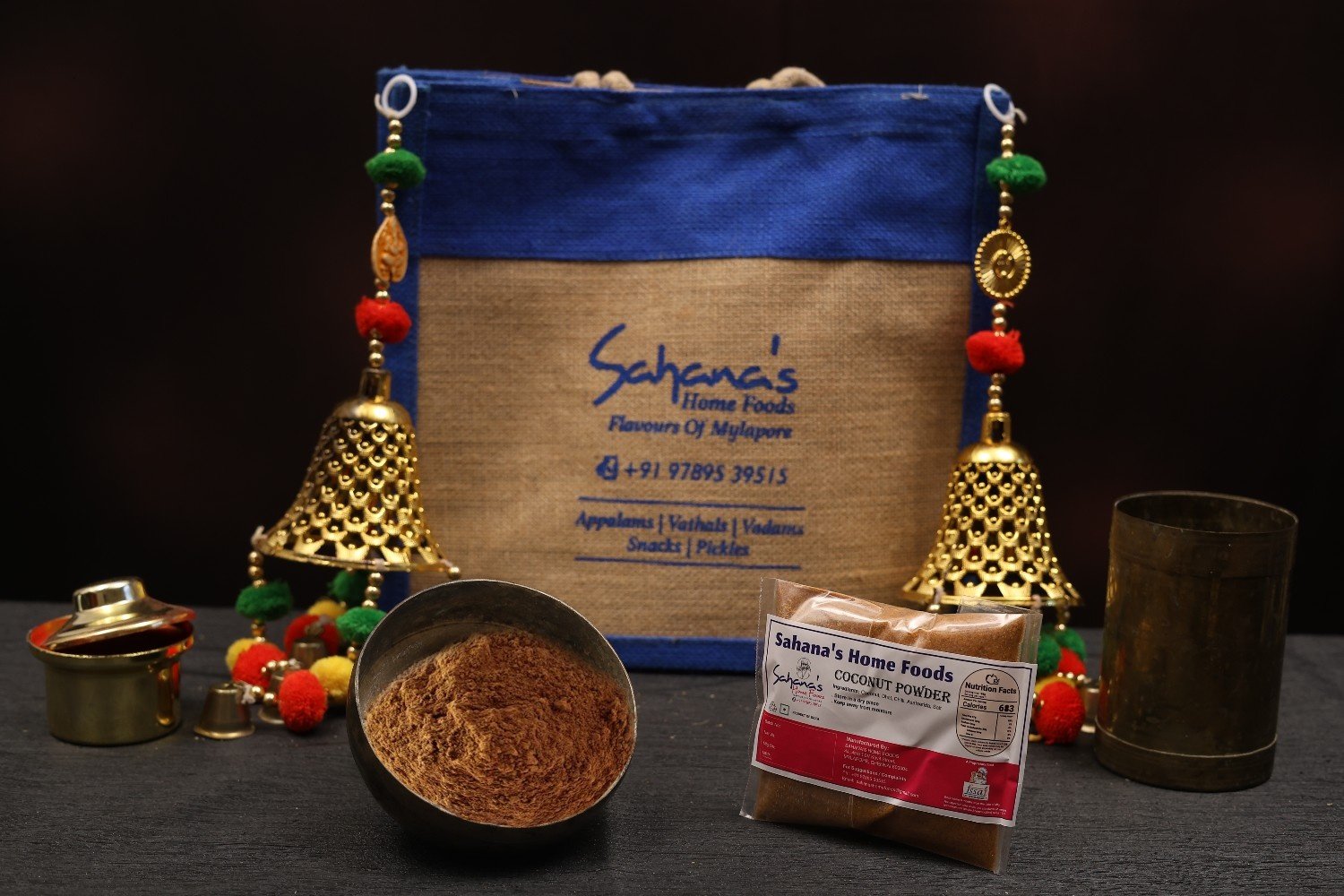 Finely grated and dried coconut, used in a variety of South Indian dishes for flavor and texture.