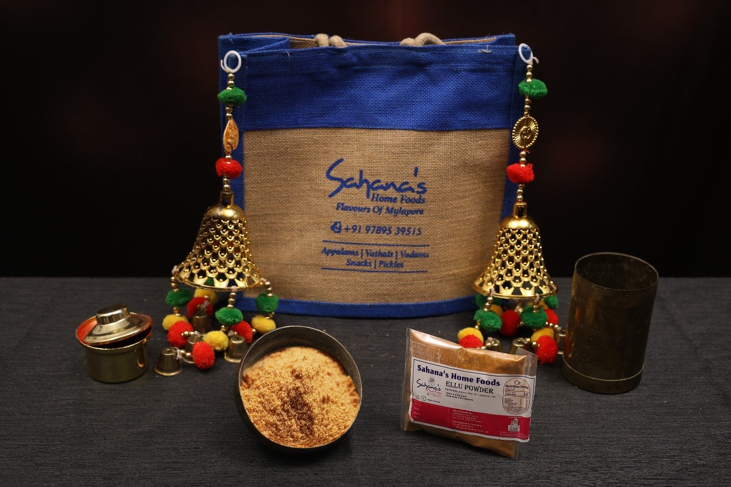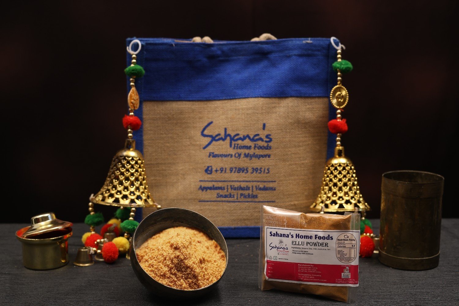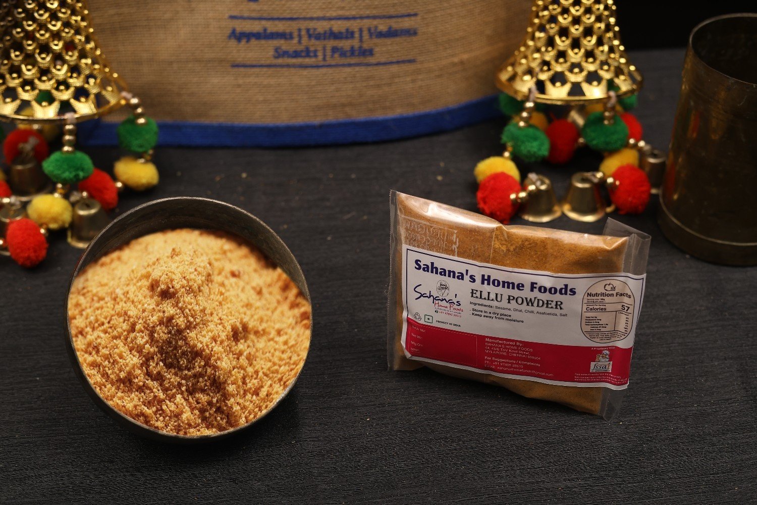 Nutty sesame seed powder, rich in calcium and typically eaten with rice or idli.