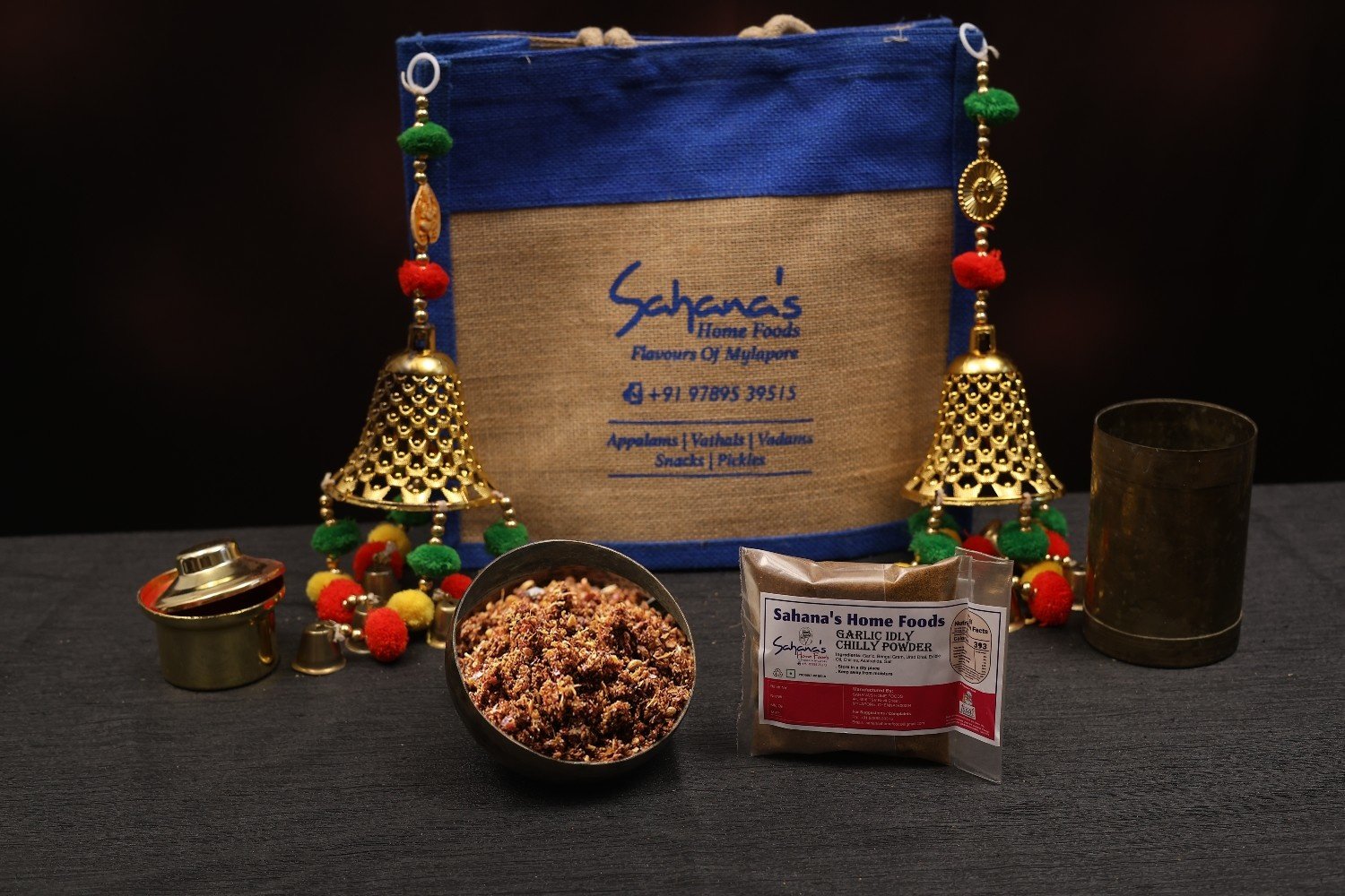 A spicy and aromatic powder made with garlic, ideal as a dip for idli or dosa with ghee or oil.