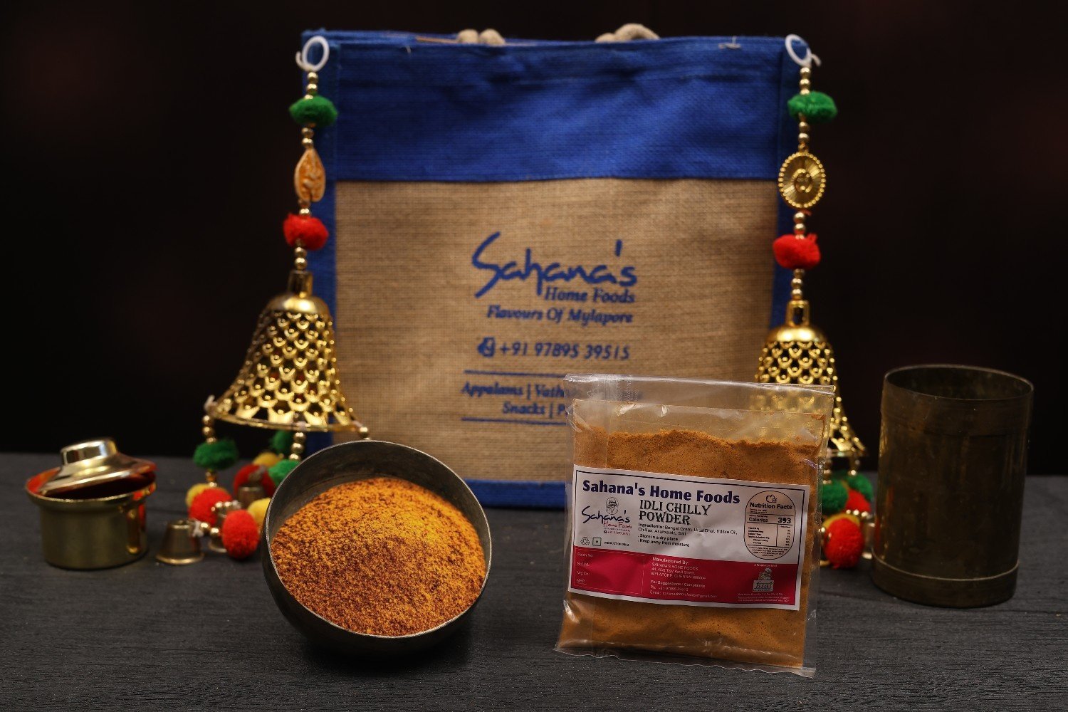 Classic South Indian spice mix (idli podi) for idli/dosa, usually mixed with sesame oil or ghee.