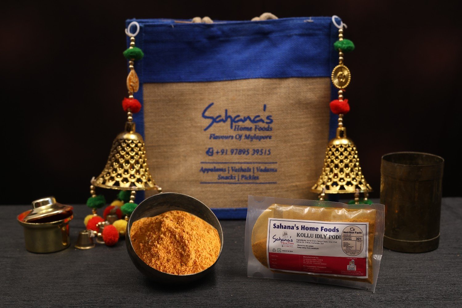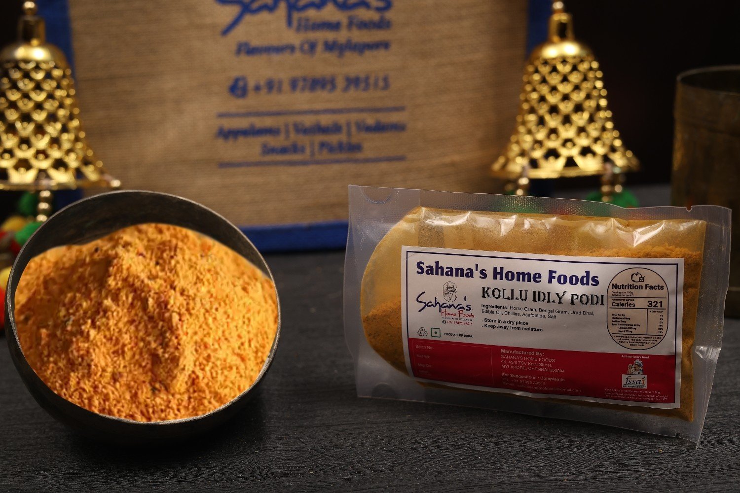 Healthy podi made from horse gram (kollu), offering high protein and ideal for idli or dosa.