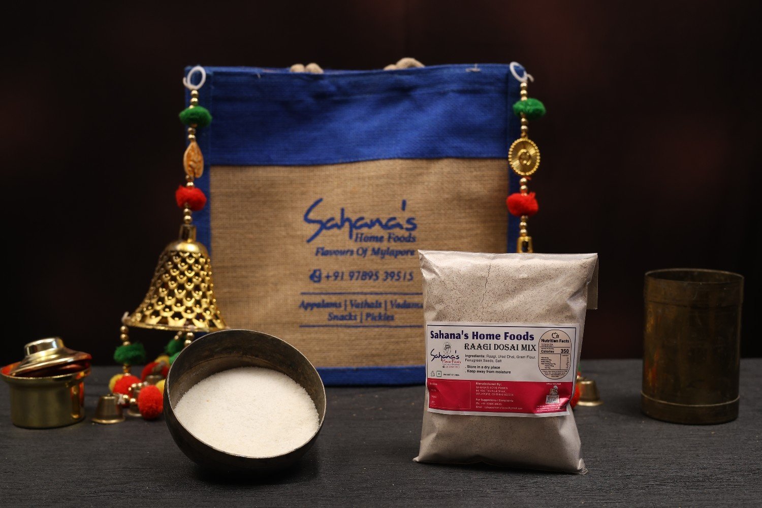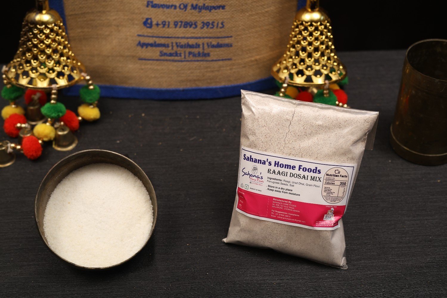 Instant dosa mix made with finger millet (raagi), rich in calcium and fiber.