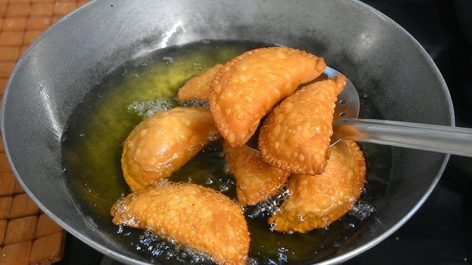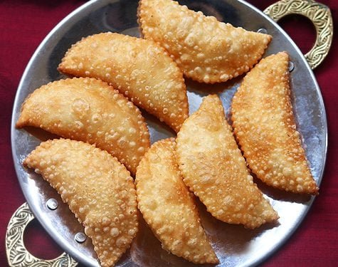 Crescent-shaped sweet stuffed with coconut and sugar, part of seer (gifting).