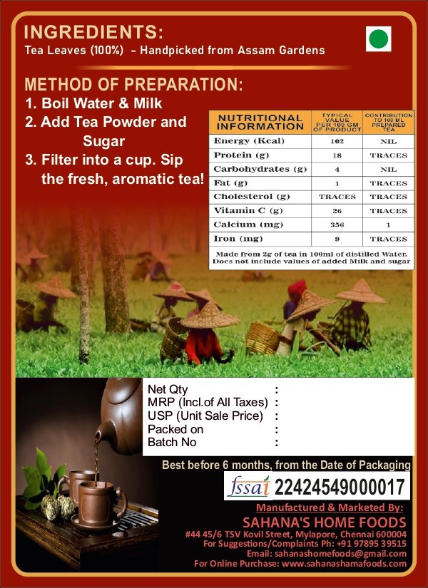 Sahana’s Assam Tea Powder is made from the finest tea leaves of Assam, offering a strong flavor, deep color, and refreshing taste that makes every sip truly invigorating.