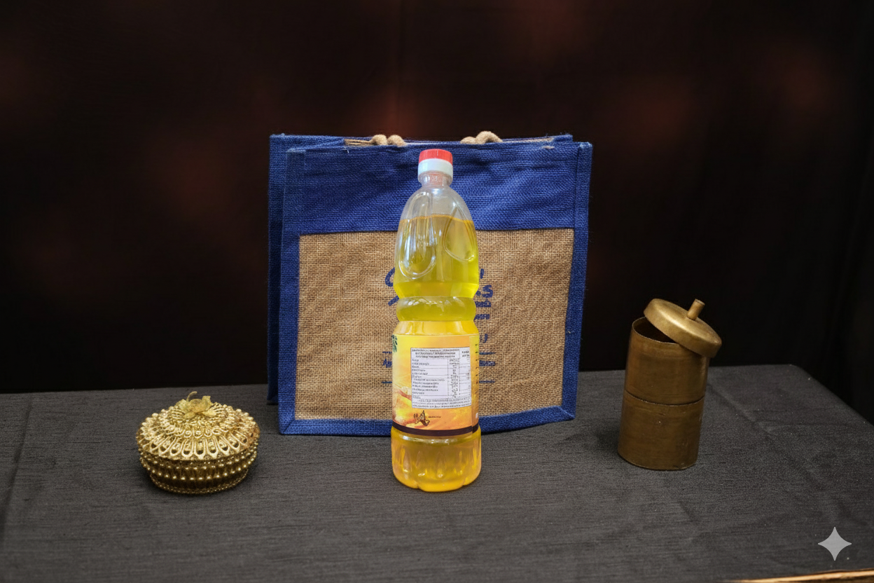 Sahana’s Cold-Pressed Groundnut Oil (Chekku Kadalennai) is extracted using the traditional wooden ghani method at low temperatures, preserving natural nutrients, rich aroma, and authentic taste, perfect for healthy cooking.