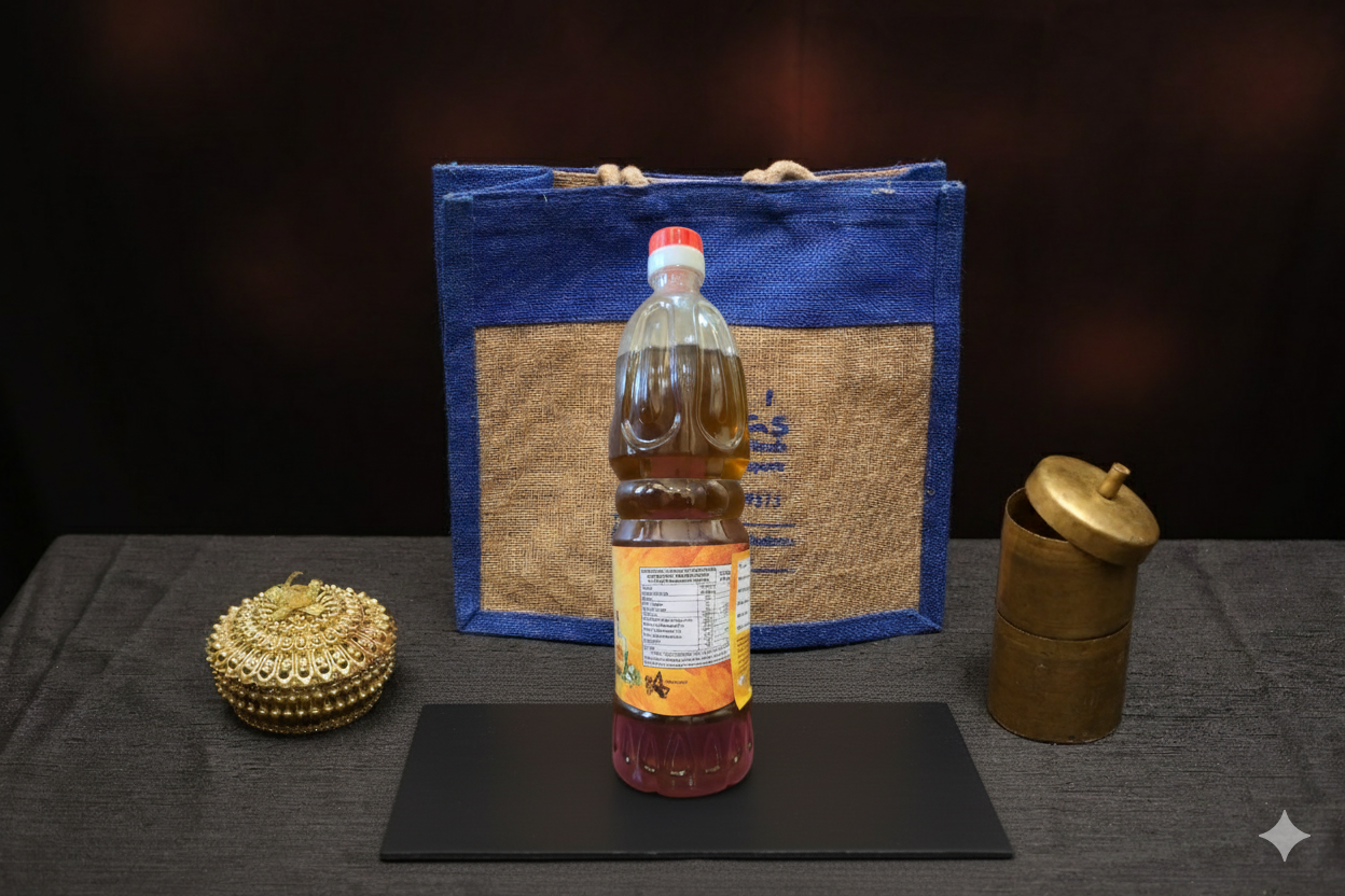 Sahana’s Cold-Pressed Gingelly Oil (Chekku Nallennai) is traditionally extracted to retain its natural aroma, rich flavor, and vital nutrients-ideal for enhancing taste and promoting wellness in everyday cooking