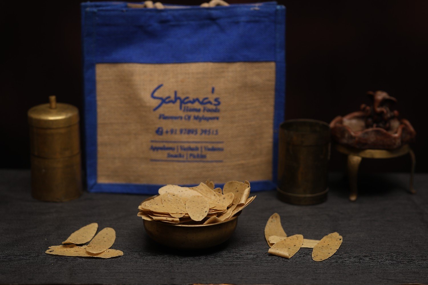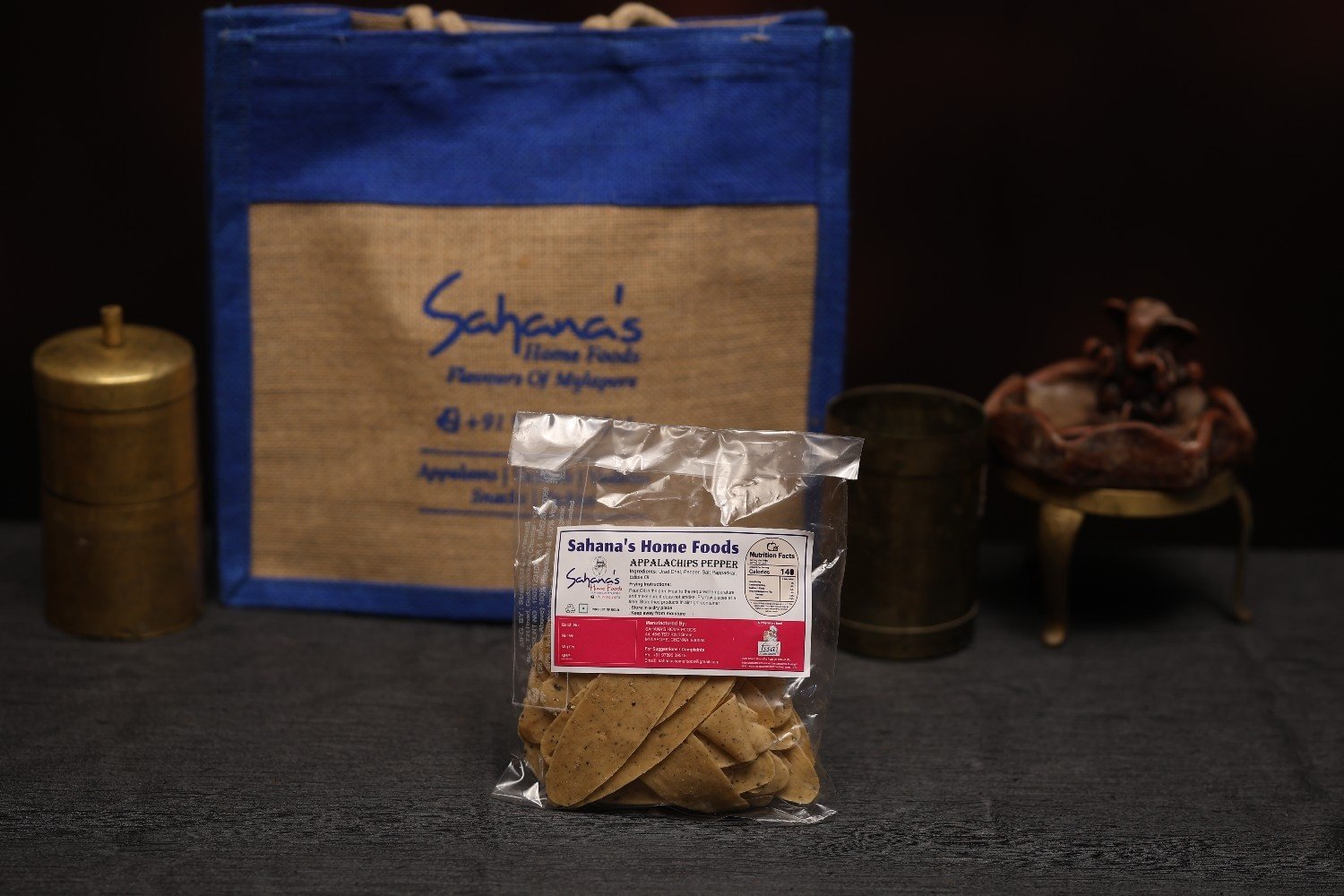 Crispy, pepper-flavored appalam chips for a spicy snacking twist.