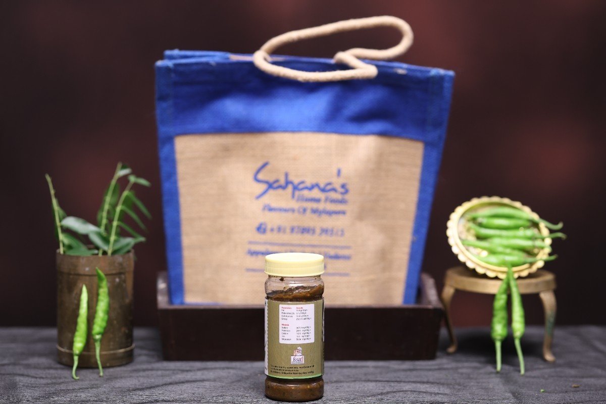 Spicy and tangy green chilli pickle to add heat to your meal.