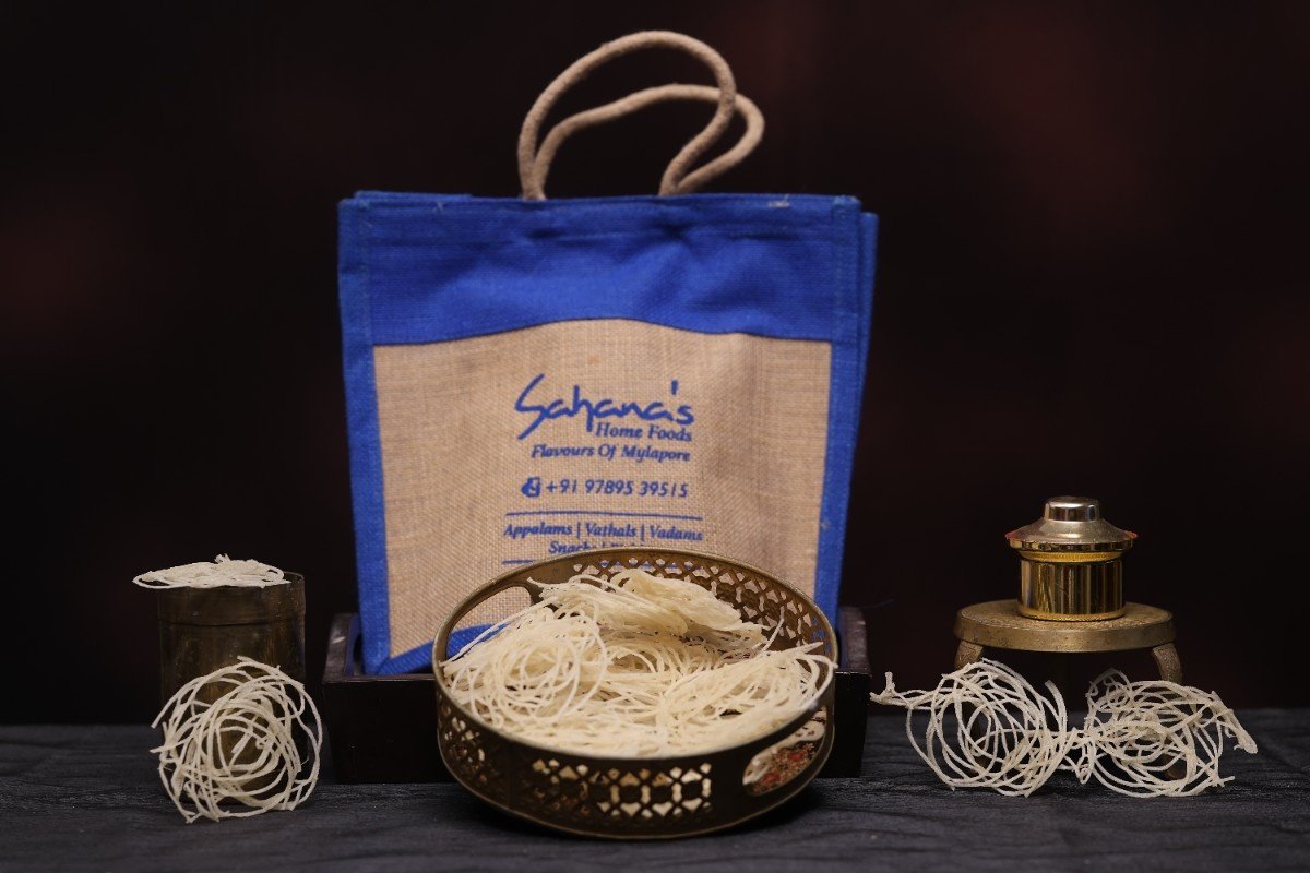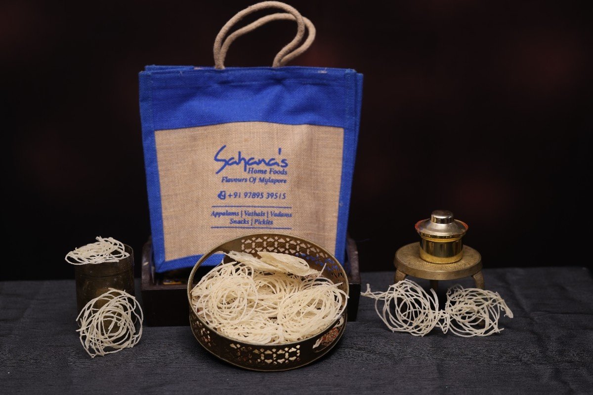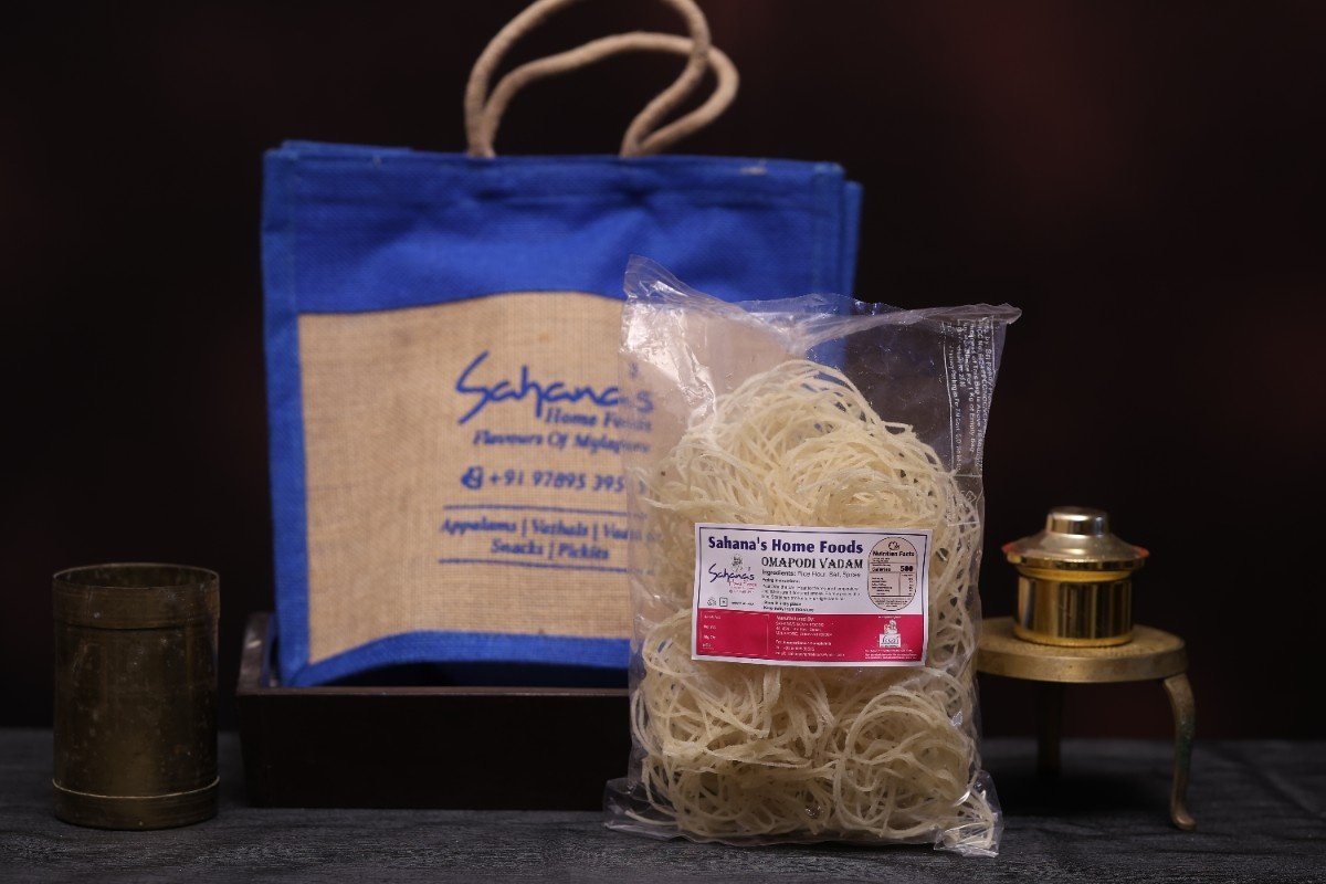 String-shaped vadam infused with ajwain (omam) for digestive benefits.